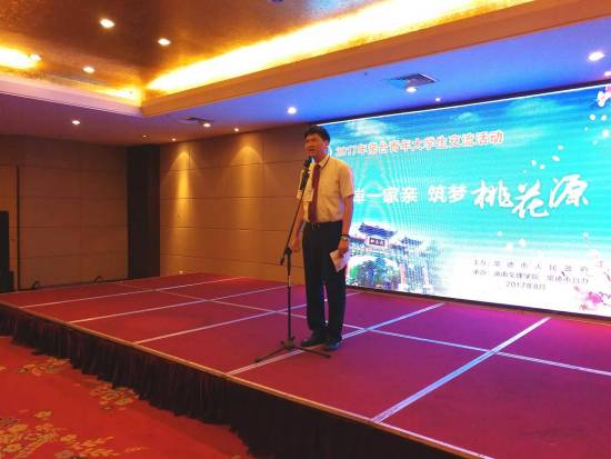 市委常委、市委統戰部長陳華女士代表常德市委市政府對來常的臺灣師生表示熱烈歡迎,并介紹了近年來常臺青年交流合作的情況。她滿懷深情地說,青年是國家和民族的未來,也是兩岸關系發展的希望。攜手推動兩岸關系和平發展,共謀中華民族偉大復興,是時代賦予兩岸青年的歷史使命。陳華同時對兩岸青年提出了希望,希望兩岸的青年大學生在領略祖國大好河山的同時能夠深入交流互動、相互學習幫助,成為共同打拼、攜手前行的好朋友、好伙伴;共同擔負起實現民族復興的重任,勇做時代的奮進者、開拓者、奉獻者,開拓進取,奮發有為,共同譜寫青春的華美樂章。