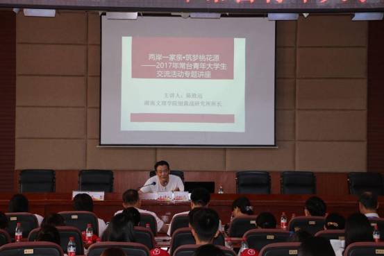歡迎儀式結束后,兩岸師生相聚一堂,共同聆聽了以常德歷史文化發展為主題的湖湘文化講座。(中國臺灣網常德市臺辦通訊員 馮琪智)