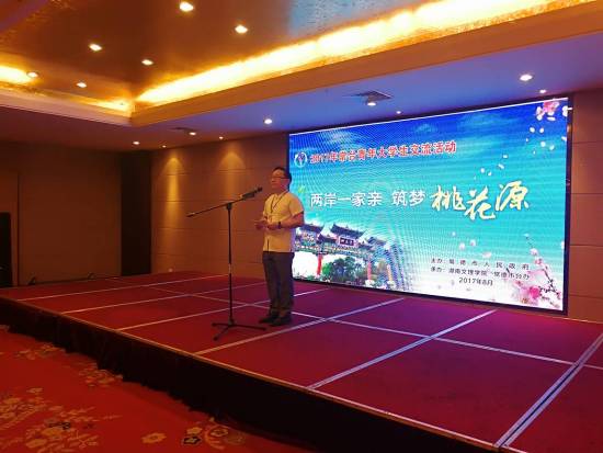 在9月1日晚歡送晚宴上,常德市人民政府臺(tái)灣事務(wù)辦公室副主任張琳表示,此次活動(dòng)時(shí)間雖短,但情誼深重;希望各位臺(tái)灣師生能夠?qū)⒊5律剿拿利惻c常德市民的友善帶回臺(tái)灣,同時(shí)也希望能夠在未來(lái)的某一天再次與寶島師生相聚桃花源。