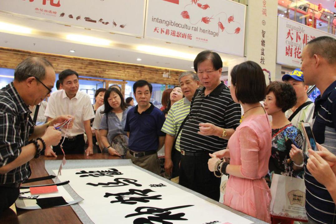 代表團一進非遺館,馬上為“茶道”和“香道”所吸引,紛紛上前“聞香品茗”;當來到湘西文化一條街,參觀團中的大多數女性企業家都被精美的藍印花布制品所吸引,尤其聽說藍印花布的染料是由板藍根、黃豆等天然作物制成的,更增加了對這圖騰好看、成品精美的布料的興趣;“中華第一剪”洪源老師現場展示背手剪字讓代表團直呼“不可思議”;而在玉疊妃菊花石館,大家觀賞著數億年前形成的天然菊花石,歷史文化和現代科技碰撞出的奇妙火花讓臺灣參觀團嘆為觀止;寶慶瓷刻、湖南湘繡研究所、芒果大叔木工坊等各場館,無不留下代表團深深地贊嘆,大家紛紛感嘆湖湘大地深厚的歷史文化底蘊,同時也被匠人精神所感染折服。