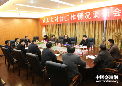 中國臺灣網3月11日新余消息 日前,江西省人大常委會外僑民宗工委副主任孫學軍一行來我市調研對臺工作情況。市臺辦匯報了2012年全市對臺工作情況,市商務局、市工商局、市公安局、市法院、市地稅局分別匯報了為臺企臺商服務工作情況。