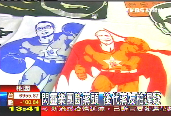 蔣介石、蔣經國的肖像印在T恤上,身體卻是肌肉猛男、緊身衣加披風。圖片來源:臺灣TVBS