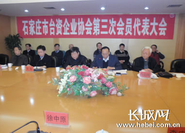 長城網石家莊1月19日訊(記者 馮素琴 郎朋飛)在新春到來之際,石家莊市以特殊的形式,喜迎省會臺資企業協會第三次會員大會召開,石家莊市市委常委、統戰部長胡儒釵、省臺辦主任潘愛良、市工經聯(經團聯)會長白起林、石家莊市臺資協會會長李進等出席會議并講話。