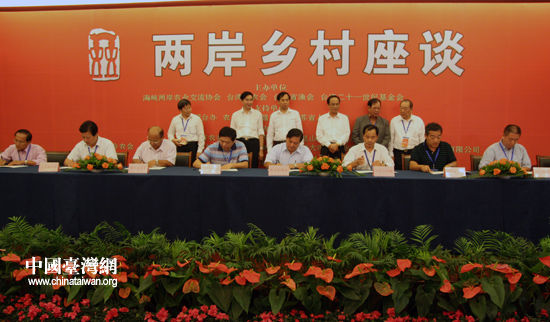 在第二屆兩岸鄉(xiāng)村座談會上,兩岸30個鄉(xiāng)村簽署合作協(xié)議,結(jié)成“對子”。(中國臺灣網(wǎng)發(fā))