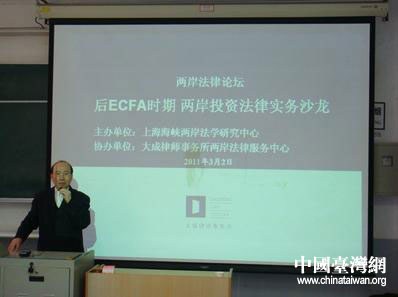 中國(guó)臺(tái)灣網(wǎng)3月9日上海消息 由上海海峽兩岸法學(xué)研究中心舉辦的首期“后ECFA時(shí)期兩岸投資法律實(shí)務(wù)沙龍”日前在華東師范大學(xué)舉行。上海市及各區(qū)縣臺(tái)辦相關(guān)負(fù)責(zé)人、法學(xué)界人士、各商會(huì)相關(guān)負(fù)責(zé)人、臺(tái)商高管、擬赴臺(tái)投資的陸資企業(yè)高管等80余人參加了活動(dòng)。