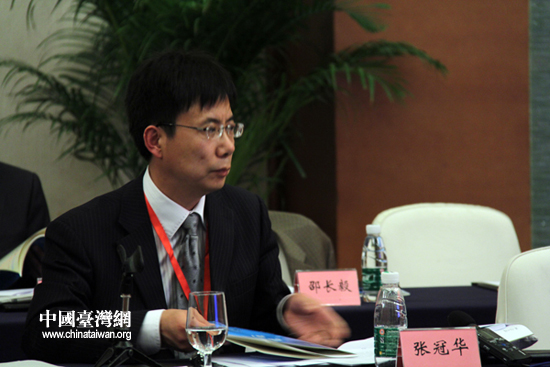 第七屆兩岸經貿文化論壇7日在成都舉行,圖為中國社科院臺研所副所長張冠華在“大陸‘十二五’規劃與臺灣‘黃金十年’” 專題研討會現場(中國臺灣網 李徽 攝)