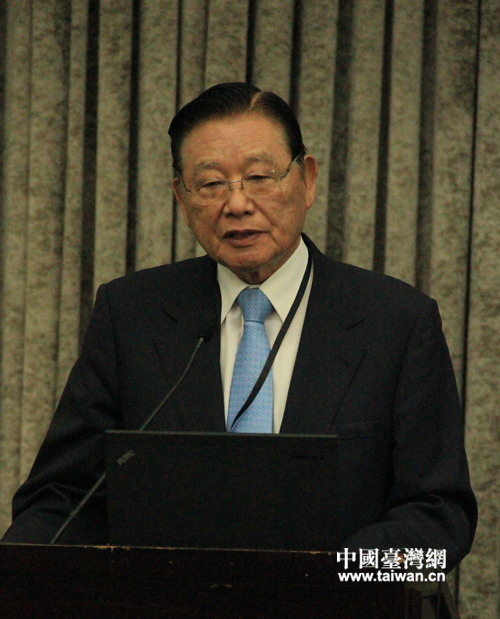 海協會前會長陳云林在“兩岸產經合作與創新發展論壇”上致辭。(中國臺灣網 扶海濤 攝)