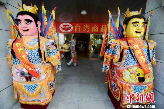 臺灣“電音三太子”門口招攬顧客。 王東明 攝