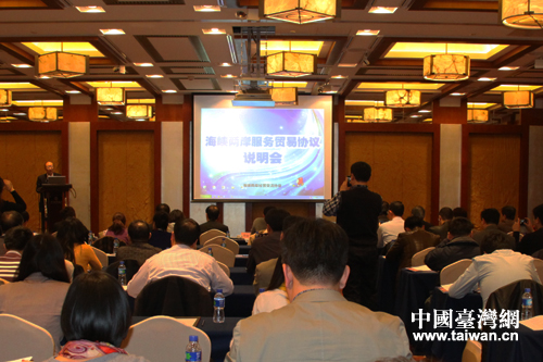 《海峽兩岸服務(wù)貿(mào)易協(xié)議》說(shuō)明會(huì)在京舉行。(中國(guó)臺(tái)灣網(wǎng) 郭慶娜 攝)