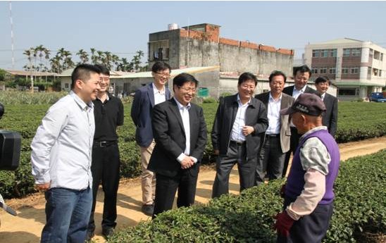 10月26日,徐景顏市長(左四)帶領淄博市經貿文化考察團在臺灣南投縣名間鄉松柏嶺茶園開展“基層交流南部行”活動,與茶農座談交流。