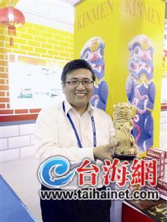 金豬金雞金茶杯,滿眼都是土豪金。這是金門宏玻陶瓷廠在旅博會(huì)金門館陶瓷展品的最大特色——金燦燦、亮閃閃。