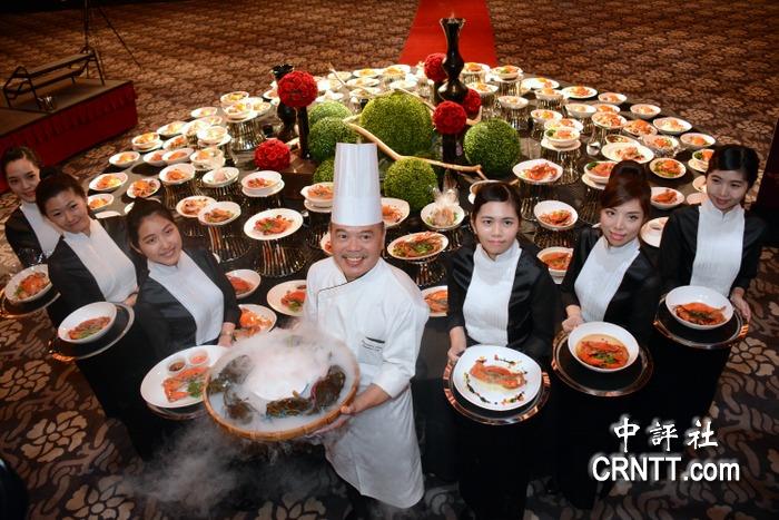 臺南市一家觀光酒店推出媲美皇室飲膳排場的“御蟹膳一零八品”。(中評社 趙家麟攝)
