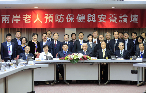 “兩岸老人預(yù)防保健與安養(yǎng)論壇”1日在臺(tái)灣桃園長(zhǎng)庚大學(xué)舉行。圖為大陸海協(xié)會(huì)會(huì)長(zhǎng)陳德銘與嘉賓合影
