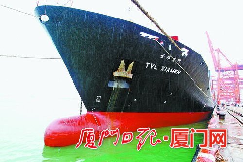 “世邦廈門”輪昨日靠泊廈門。(本報記者 王協(xié)云 攝)