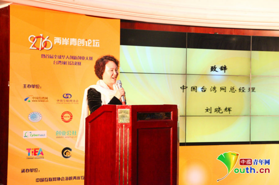 中國臺(tái)灣網(wǎng)總經(jīng)理劉曉輝致辭。 中國青年網(wǎng)見習(xí)記者 岳巍攝