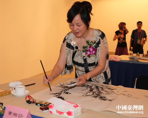 黃湘詅老師在筆會活動現場作畫。她說畫畫是一件很開心的事。(中國臺灣網 李典典 攝)