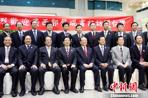 7月1日,應(yīng)中國(guó)國(guó)民黨中央委員會(huì)邀請(qǐng),中共廣西壯族自治區(qū)黨委書(shū)記郭聲琨(中)率廣西經(jīng)貿(mào)文化代表團(tuán),乘包機(jī)自南寧飛抵臺(tái)灣桃園機(jī)場(chǎng),展開(kāi)為期5天的深化交流合作寶島行。這是兩岸簽署經(jīng)濟(jì)協(xié)議ECFA后,第一位訪(fǎng)臺(tái)的大陸正省級(jí)官員。中新社發(fā) 黃少華 攝