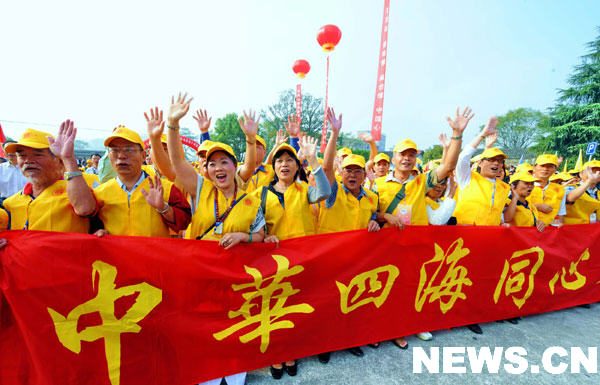 10月16日,臺灣客家后裔在第十五屆世界客屬石壁祖地祭祖大典上。