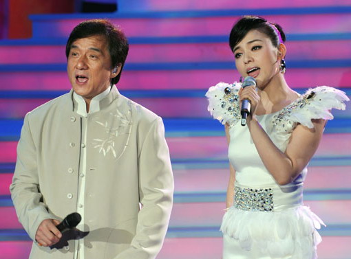 10月31日,陳思思(右)與成龍在演唱會上表演。新華社發(吳景騰 攝)