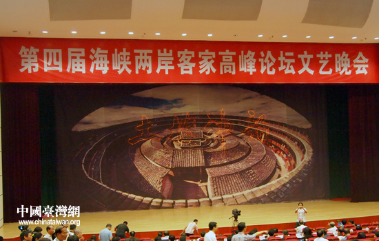 第四屆海峽兩岸客家高峰論壇今晚舉辦文藝晚會,演繹客家風情。(中國臺灣網 張弛 攝)