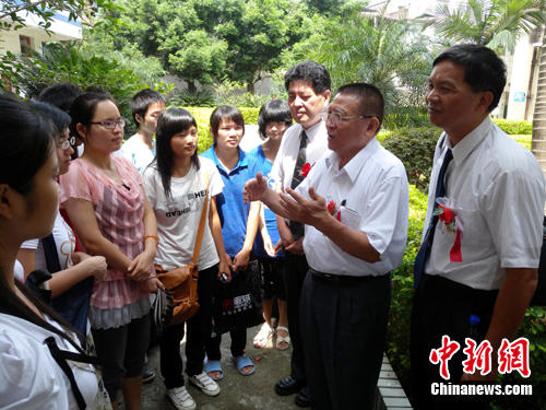 8月20日,臺灣“丘鴻茂鴻基文教助學基金會”部分理事在福建永定縣與受助學生交談。當天,以福建永定縣西溪鄉為主的116名貧困生或品學兼優的高中、大學學生受到了該基金會總共6.25萬元的資助。據悉,“丘鴻茂鴻基文教助學基金會”是臺胞曾桐基、許葆良先生等人為報答已逝師父、永定縣西溪鄉旅臺同胞丘鴻茂的恩情于2001年設立的。至2010年,該基金會連續10年在永定縣資助學生1500多人次,共捐獻人民幣近100萬元。 (劉永良 攝)