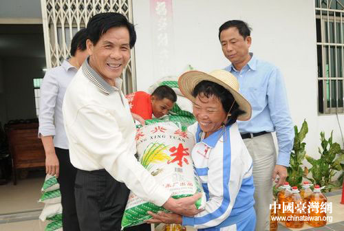 臺商莊天島也加入到了石會長的獻(xiàn)愛心行動之中。他們了解到文昌錦山鎮(zhèn)敦秩村在這次洪水中受災(zāi)嚴(yán)重。該村位于文昌市最大的湖心水庫庫壩之下,強(qiáng)降雨期間,庫壩多處潰堤,全村96戶近500名村民被迫兩次撤離。石永和莊天島向每戶村民贈送一袋大米。得知向災(zāi)民送大米,臺資企業(yè)泰龍村大同貨倉董事長許晴朝主動提供貨運(yùn)車運(yùn)送。