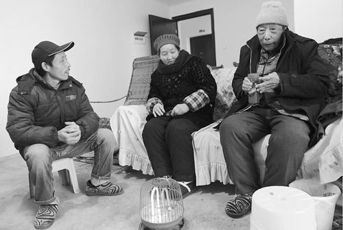 7棟3單元,董廷章老人和老伴坐在客廳的火爐旁,三代同堂的他們一家從板房直接搬進了新居!澳憧催@墻壁和地板,不用裝修就可以住人!倍⒄轮钢块g贊嘆。順著他所指的方向,平整堅實的墻體、雪白嶄新的墻漆、光潔平坦的水泥地板映入記者眼簾。