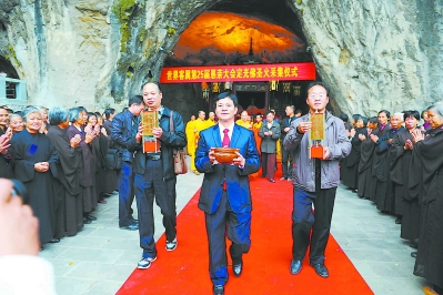 同時,武平縣成立定光佛世遺申報小組,組織人員對定光佛信俗進行收集、整理,并將已發(fā)掘、普查、研究的成果,包括文字、音像、實物給予分類整理,專柜陳列;加強對定光佛信俗的學術研究,發(fā)掘其文化內涵;引導本地定光佛信俗人員開展原生態(tài)的信俗活動,使定光佛信俗得以傳承和發(fā)揚。
