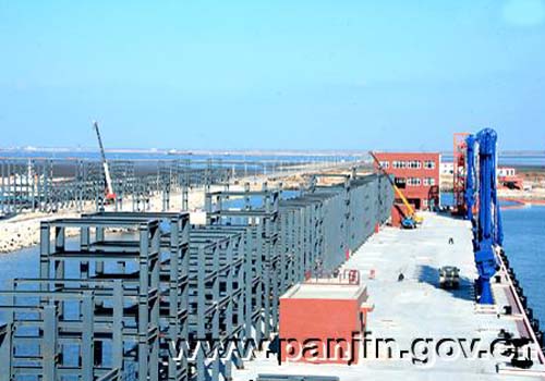 據了解,盤錦港為綜合性港區,港區占地面積40平方公里,規劃建設生產性泊位60個,吞吐能力可超億噸,先期建設2個多用途泊位,2個油品泊位,泊位水工結構5萬噸級,多用途碼頭長度401米,油品碼頭長度666米,泊位前沿水深14.5米,并配套建設航道工程。到今年年底再投產一個多用途泊位和兩個成品油泊位,屆時將形成散雜貨和油品1000萬噸以上的通過能力。