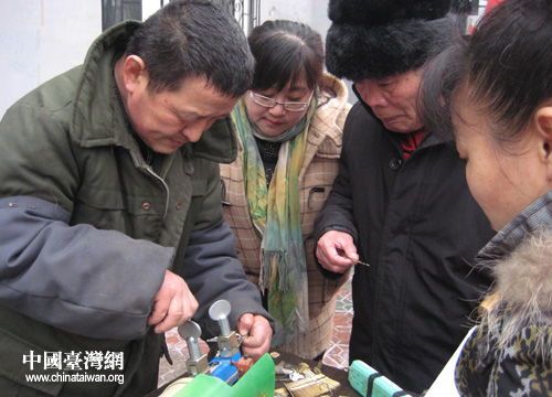 臺屬義工鄒志剛熱心為轄區居民配鑰匙(圖片來源:丹江市臺辦)