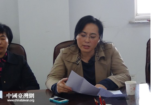 大洼縣臺(tái)胞臺(tái)屬聯(lián)誼會(huì)會(huì)長(zhǎng)徐麗在會(huì)上發(fā)言。(圖片來(lái)源:大洼縣委統(tǒng)戰(zhàn)部)