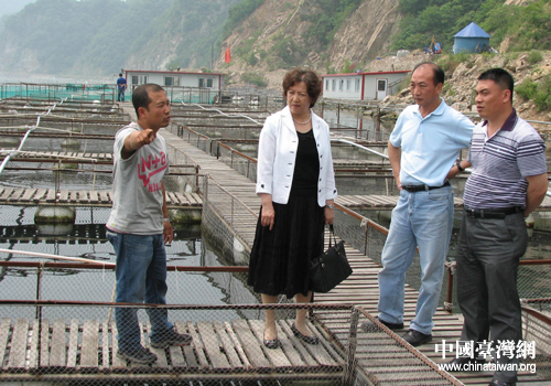 遼寧丹東市臺(tái)辦主任李秀環(huán)一行參觀養(yǎng)殖基地。(圖片來源:丹東市臺(tái)辦)