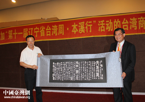 雙方互贈禮物。(圖片來源:本溪市臺辦)