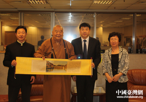 考察團一行拜會星云大師并合影留念。(圖片來源:葫蘆島臺辦)