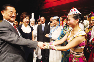 中國國民黨榮譽主席連戰在觀看了演出后,與全體演職人員合影,他祝賀演出成功。連戰說,這次內蒙古民族歌舞劇院到臺灣演出,從南到北受到一致的歡迎,希望大家下次有機會再來臺灣演出。
