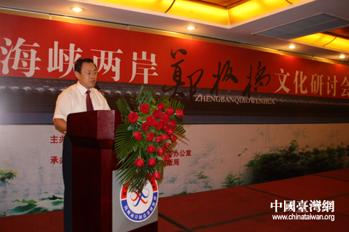 鐘河林在致辭中表示,鄭板橋作為兩岸同胞公認(rèn)的歷史文化名人,給我們留下了十分豐富的文化遺產(chǎn)和精神風(fēng)范。鄭板橋文化的“為民造福和不斷創(chuàng)新”精神,也是我們今天促進(jìn)兩岸關(guān)系和平發(fā)展應(yīng)具有的精神品格。他認(rèn)為,以鄭板橋?yàn)槊剑瑑砂兜膶?zhuān)家學(xué)者、普通百姓可以找到共同感興趣的話(huà)題,可以更加深入廣泛地從精神層面探求中華文化在兩岸的傳播,從而進(jìn)一步增強(qiáng)兩岸同胞休戚與共的文化認(rèn)同和民族認(rèn)同,促進(jìn)兩岸文化交流向更深層次、更廣闊領(lǐng)域發(fā)展。
