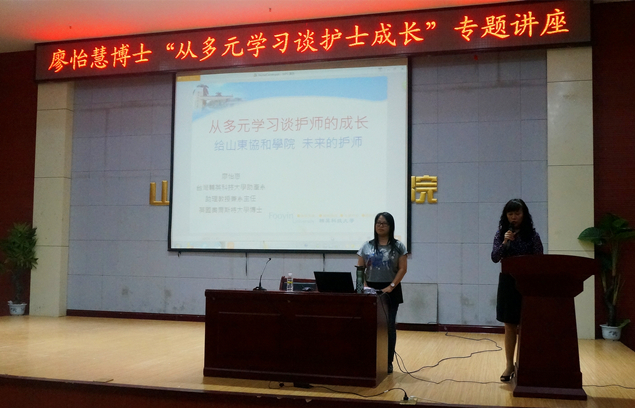 輔英科技大學助產系主任廖怡惠博士在學術報告廳為同學們做了題為“從多元學習談護師成長”的學術講座。廖博士還與學校教師分享了臺灣護理與助產專業建設的發展趨勢,并講述了輔英科大助產專業的發展與課程設置概況以及在這方面取得的成就。講座結束后,護理學院青年教師與廖博士進行了學術交流。