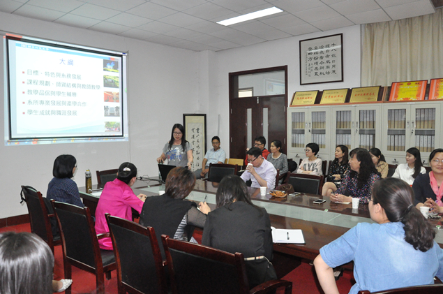 輔英科技大學幼保系主任吳柳嬌博士帶領學生一行在校交流期間,參觀了人文教育學院的實訓室,并進入班級進行隨堂學習體驗。不同的班級,不同的課程,不同的學習方式,臺灣同學很認真地參與課程學習的每個環節,體驗與臺灣教學風格迥異的課堂學習。課堂上兩岸學子踴躍發言,氣氛十分活躍。在人文教育學院教研活動時間,吳博士為青年教師做報告并開展座談。