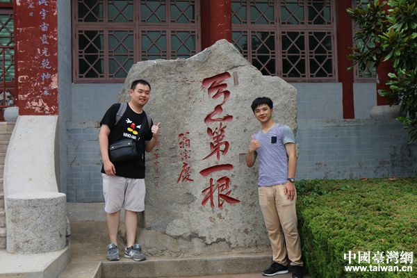 臺(tái)灣學(xué)生與翁宗慶題詞碑合影留念。(圖片來(lái)源:日照市臺(tái)辦)