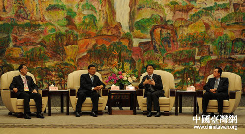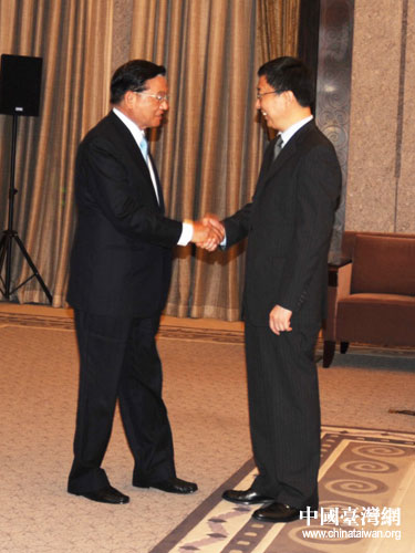 海協(xié)會會長陳云林、上海市副市長姜平、海協(xié)會副會長王在希參加會見。(中國臺灣網(wǎng)上海臺辦通訊員常志康)