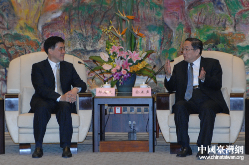 中共中央政治局委員、上海市委書記俞正聲會見臺北市長郝龍斌(圖片來源:上海市臺辦)