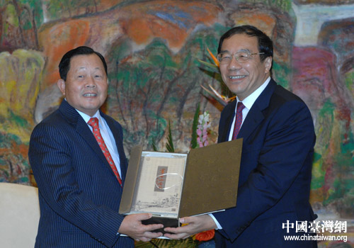 雙方互贈(zèng)紀(jì)念品(圖片來源:上海市臺(tái)辦)