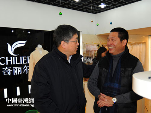 中國臺灣網1月5日上海消息 1月3日,上海市臺辦巡視員季平來到位于嘉定區工業區的臺資企業上海奇麗爾制衣有限公司,親切慰問董事長陳進賢,陳佐際、宋惠明等隨同參加。陳進賢介紹了近年企業經營、進步發展的概況。