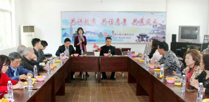 中國臺灣網4月18日上海訊 上海閔行區臺聯會七寶分會于2017年4月14日下午2點在蒲匯居委“心語茶社”隆重舉辦了“共講故事,共話愿景,共展風采”活動。區臺辦主任張海平、副主任顧海華、區臺聯會會長王燕、副會長楊虎、副會長張佩華、鎮統戰科陸曉晨及七寶鎮臺胞臺屬臺商近40人出席了此次活動。