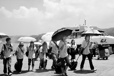 17日上午11時40分,由100名馬祖學生組成的馬祖世博游旅行團,經“兩馬”航線抵達福州馬尾港。福州邊檢站為旅行團啟動快速通關服務,僅用15分鐘就完成了旅行團的通關工作。王鵬 攝