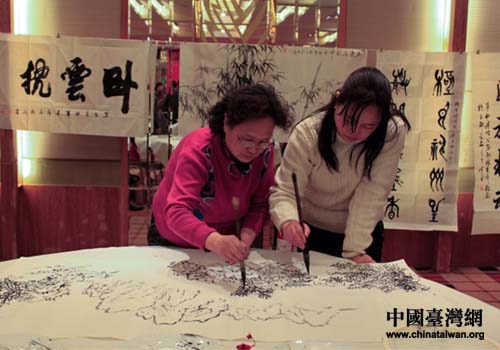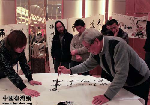 會上,來自陜西各界的書畫名家、大師們現場揮毫潑墨,切磋技藝,親切交流,氣氛熱烈。大家表示,希望通過書畫交流活動,進一步推動兩岸文化交流和繁榮,增進兩岸同胞間的民族認同感,加深鄉情、親情和友情。(中國臺灣網陜西省臺辦通訊員 張群莉)