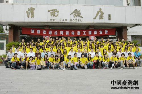 中國臺灣網7月11日渭南消息 日前,第二屆兩岸青年志工陜西行暨渭南支教活動儀式在陜西渭南市啟動。來自臺灣伊甸社會福利基金會的107名青年志工及渭南市5所千鄉萬才會員學校代表參加了啟動儀式。