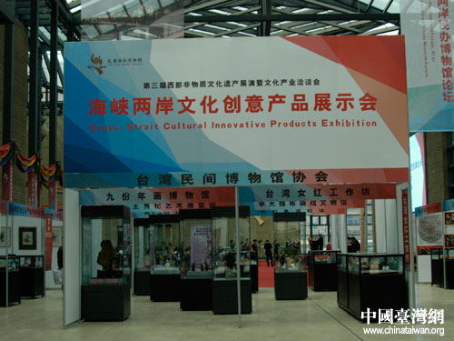 海峽兩岸文化創(chuàng)意產(chǎn)品展示會(huì)現(xiàn)場(chǎng)。(圖片來源:陜西省臺(tái)辦)