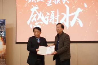 西北大學藝術(shù)學院馬永寬書記接受組委會蕭建華頒發(fā)的感謝狀。(攝影:溫雅)