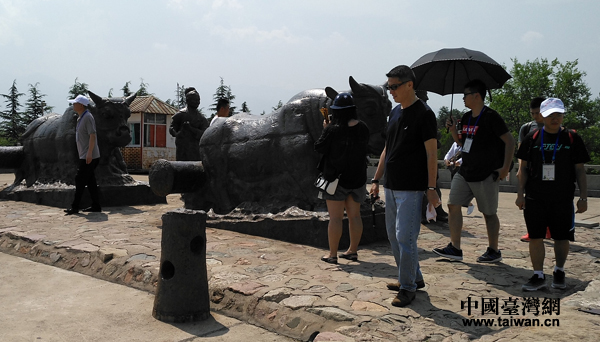 7月22日,臺(tái)灣青少年參訪蒲津渡遺址中的唐朝開元大鐵牛。(中國臺(tái)灣網(wǎng) 王文英 攝)